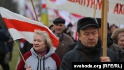 «Золата каштоўнае тым, што яно рэдкае. Акцыя тым і каштоўная, што людзі выйшлі на покліч сэрца і яны як соль нацыі. Супэр, што мы так ідзём і гэта бачаць людзі з вокнаў. І Беларусь жывая, і памяць пра Беларусь жывая. Сталінскія тэрарыстычныя мэтады сапсавалі жыцьцё многім людзям. І пра гэта трэба памятаць. Цяпер выкарыстоўваюць іншыя мэтады. Трэба адключыць расейскія тэлеканалы і стаць людзьмі», — сказала ўдзельніца шэсьця праваабаронца Людміла Гразнова.