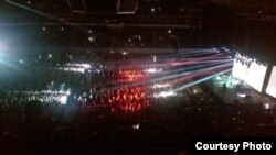 Цягам канцэрту здымачная група «Белсату» зафіксавала, як забралі пяць сьцягоў: чатыры – у фанзоне і адзін — на трыбуне. Адной глядачцы ўдалося абараніць украінскую сымболіку.
