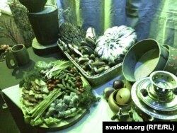 Аздабленьне арганізатары імкнуліся зрабіць у беларускім стылі. Перад самым уваходам у клюб — воз зь сенам. У холе — вясковая інсталяцыя. Лавачка, гаршчкі, бочкі. Дзяўчына ў чырвонай хустцы трымае козачку, побач — гагаюць гусі. Людзі спрабуюць гусей пагладзіць, тыя разьбягаюцца па кутах свайго невялікага загончыка.