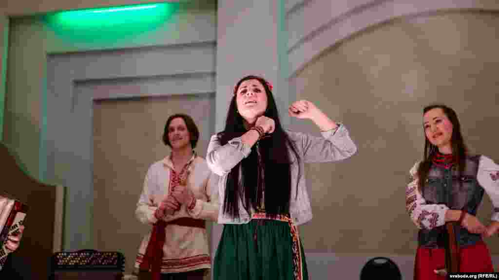 24 лютага ў малой залі Белдзяржфілярмоніі адбылася вечарына «Песьні матчыны з Вушаччыны», прысьвечаная 80-годзьдзю народнага паэта Беларусі Рыгора Барадуліна. Арганізатарам і вядоўцам вечарыны стаў саліст Белдзяржфілярмоніі, лідэр гурта Vuraj Сяржук Доўгушаў. (Фота Андрэя Шаўлюгі)