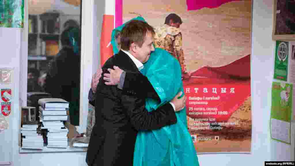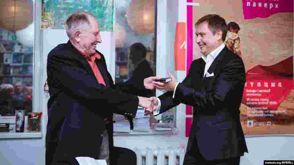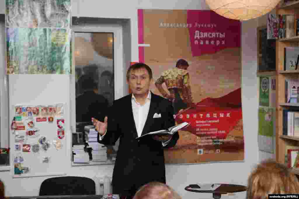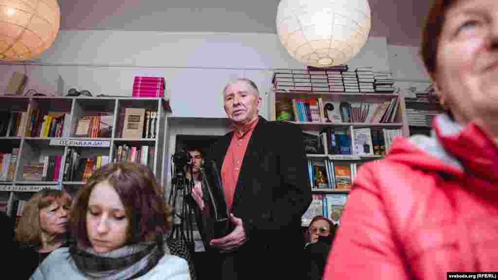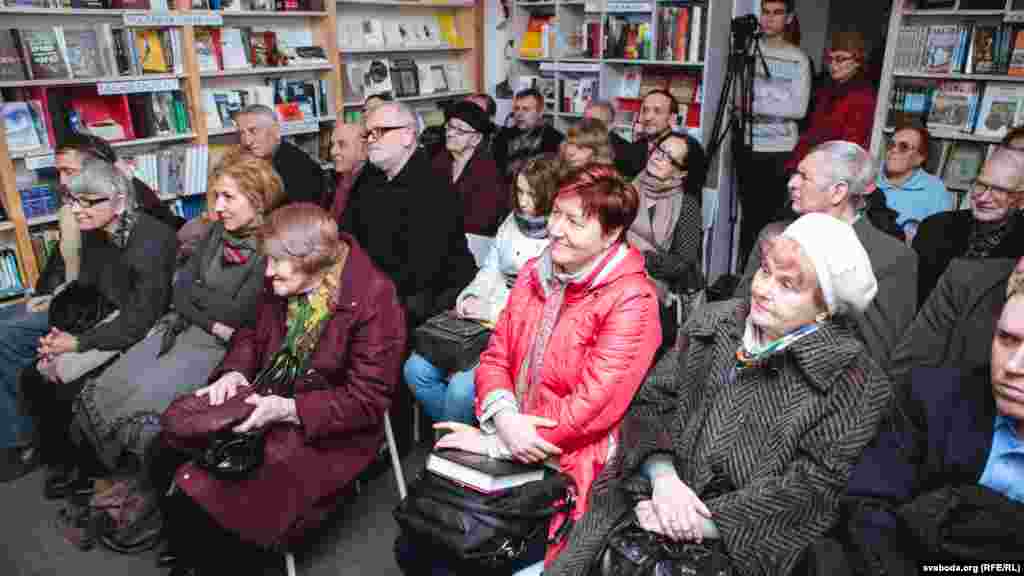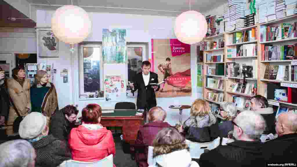 На прэзэнтацыю новай кнігі сабралася поўная заля кнігарні «Логвінаў». У вечарыне ўзялі ўдзел літаратары Уладзімер Арлоў і Анатоль Вярцінскі, мастак Генадзь Мацур, паэт Андрэй Хадановіч ды іншыя.