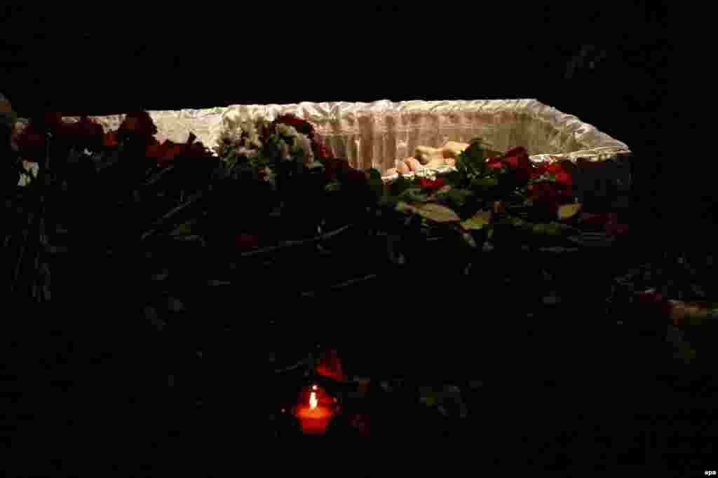 Труну з целам Нямцова нясуць у Сахараўскі цэнтар.