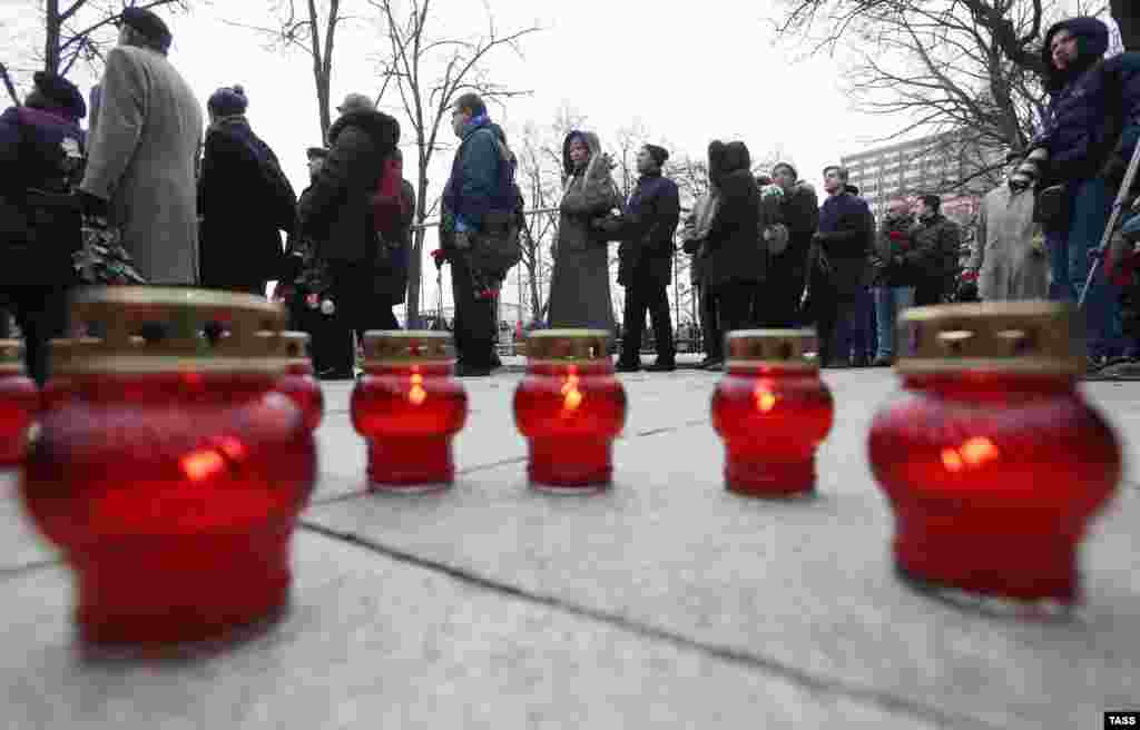 У сталіцы Расеі сёньня хаваюць застрэленага апазыцыянэра Барыса Нямцова. Фота з грамадзянскай паніхіды ў Сахараўскім цэнтры.