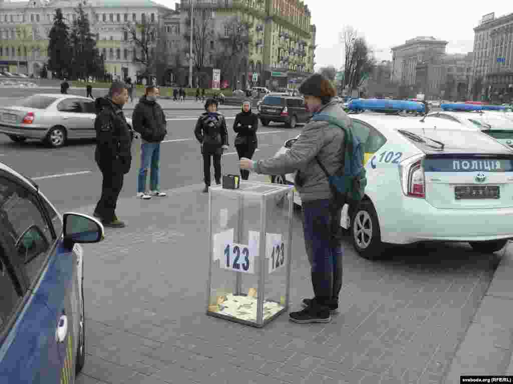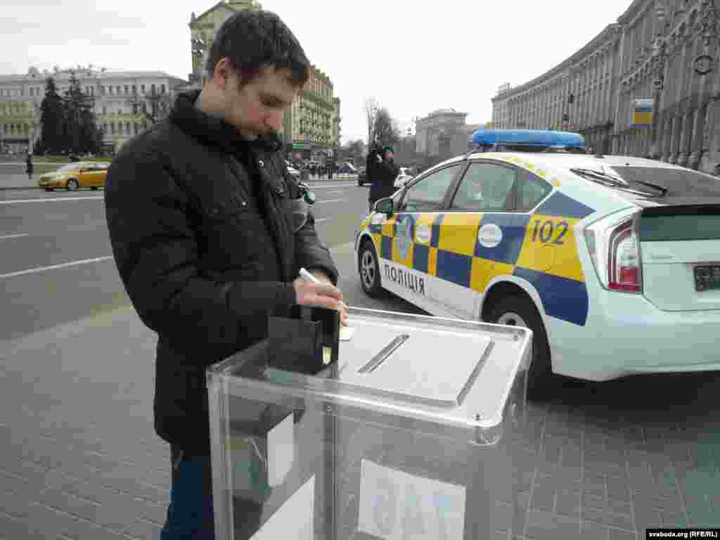 Сёньня у Кіеве на майдане Незалежнасьці адбылося народнае галасаваньне за дызайн аўтамабіляў патрульнай паліцыі, якая ствараецца замест патрульна-паставой службы міліцыі і дзяржаўнае аўтамабільнае інспэкцыі.