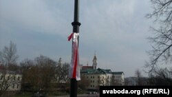Белыя і чырвоныя стужкі зьявіліся каля віцебскіх мастоў. Чыя гэта ідэя — невядома, але мінакі адразу зьвяртаюць увагу на незвычайную зьяву.