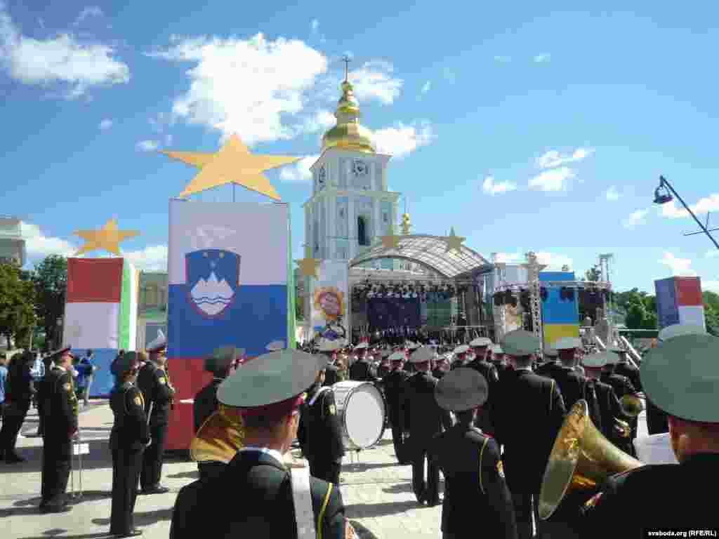 Учора ў Кіеве на Міхайлаускай плошчы каля Міністэрства замежных справаў адбылося святкаваньне Дня Эўропы. Украіна — адзіная краіна па-за Эўразьвязам, якая адзначае гэтае сьвята на дзяржаўным узроўні. Да кіяўлян і гасьцей сталіцы са сцэны зьвярталіся дыпляматы краін Эўразьвязу, МЗС і мэр Кіева Віталь Клічко.