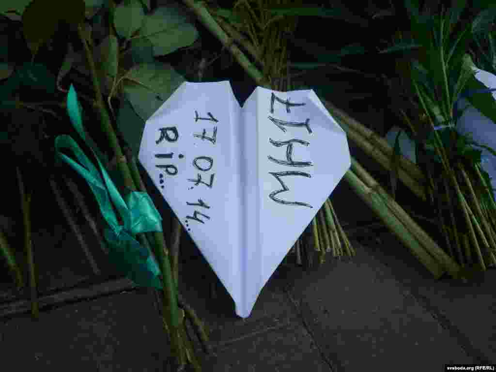 Учора ў Кіеве, як і год назад, сотні жыхароў украінскае сталіцы прынесьлі на ганак амбасады Нідэрляндаў кветкі і дзіцячыя цацкі. Побач — папяровыя самалёцікі — сымбаль трагедыі рэйсу МН17.