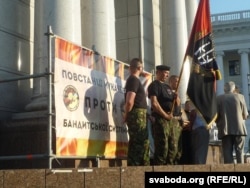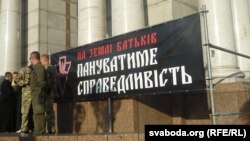 На пачатку акцыі на плошчу ўвайшлі вайскоўцы добраахвотных аадзелаў «Правага сэктару» — пад песьню «Воины Света» (на відэа).