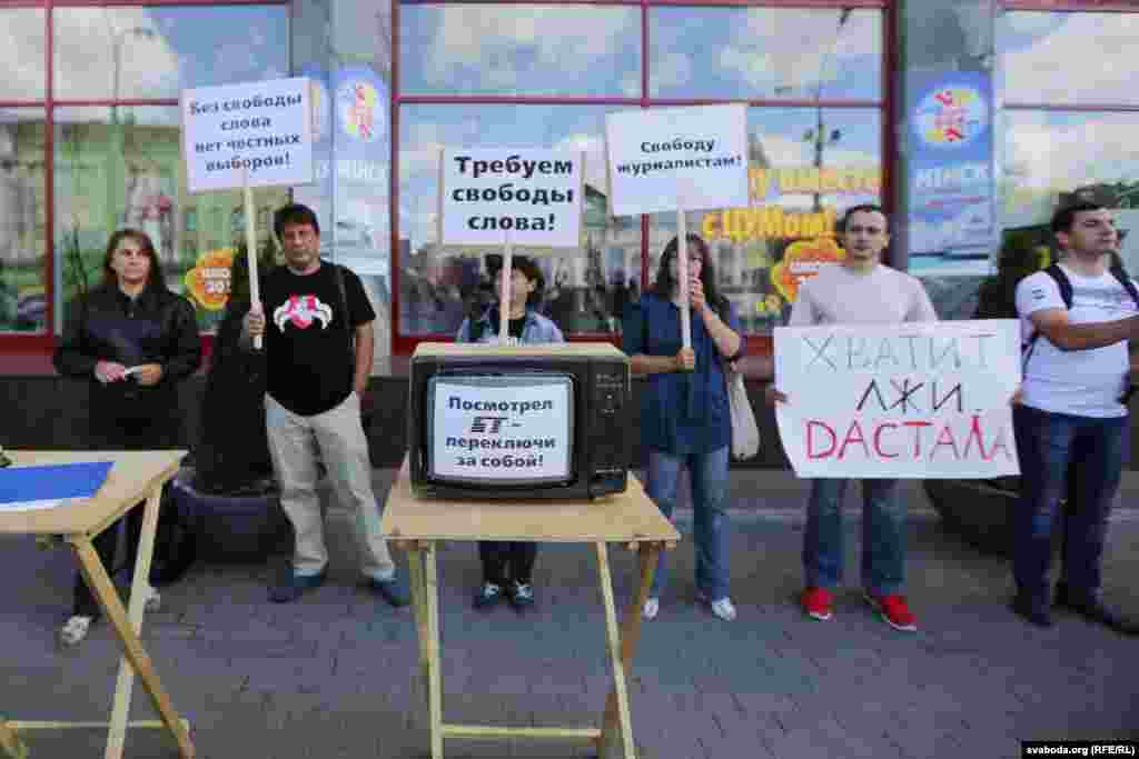 Лідэр Аб’яднанай грамадзянскай партыі Анатоль Лябедзька правёў вулічную акцыю ў падтрымку незалежных журналістаў і свабоды слова ў Беларусі. Падзея адбылася ў рамках збору подпісаў за вылучэньне кандыдатаў на ўдзел у прэзыдэнцкай выбарчай кампаніі на адным з пікетаў, які месьціцца каля крамы “ЦУМ” у цэнтры Менску.