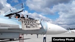 Як расказаў сам спадар Штода, яму не без складанасьцяў, але ўдалося залезьці ў кабіну вайсковага самалёта-зьнішчальніка, які экспанаваўся ў рамках выставы. Там ён разгарнуў самаробны плякат з надпісам «Лукашэнка! Патрабуем амністыі BelToll», а калегі зрабілі некалькі здымкаў. Перашкодаў з боку арганізатараў удалося пазьбегнуць.