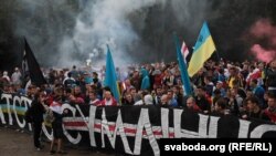 Беларускія і ўкраінскія фанаты праводзяць сумесны марш — 7-кілямэтровы паход ад цэнтру горада да стадыёну: а 19-й гадзіне на «Арэне Львоў» пачнецца матч адборачнага цыклю да чэмпіянату Эўропы паміж зборнымі Ўкраіны й Беларусі.