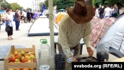 Ад самага пачатку было дзьве ў розных канцах лягера, але выглядае, што будзе болей. Ежу і ваду прыносяць людзі, раздаюць валянтэры. Пад’есьці тут можа кожны ахвотны, да чаго шчыра запрашаюць.