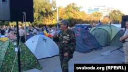 Месьціцца пад асобным тэнтам і вырашае ўсе арганізацыйныя пытаньні. Тут вядуць улік, ведаюць, колькі чалавек у кожным намёце, сочаць за парадкам і стараюцца не дапускаць правакацыяў. «Мы прыйшлі сюды, каб адстаяць свой гонар і годнасьць і забраць тое, што „яны“ ў нас скралі», — кажа хлапец, якога завуць Сяргеем. На фота ён зьлева. У сераду ўдзень, калі мы размаўлялі, было зарэгістравана 226 намётаў, але ўжо ўвечары да іх дадаліся яшчэ дзясяткі.