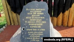 Але калі праехаць у канец вёскі, на могілкі, падарожніка ўразяць даты на помніках. На большасьці надмагільляў дата стаіць адна. 9 лютага 1943 году. Менавіта ў гэты дзень нацысты зьнішчылі вёску разам з жыхарамі. І могілкі гэтыя ўзьніклі тады ж, у 43-м. Тыя, хто пасьпеў уцячы і застаўся ў жывых, хавалі тут сваіх сваякоў.