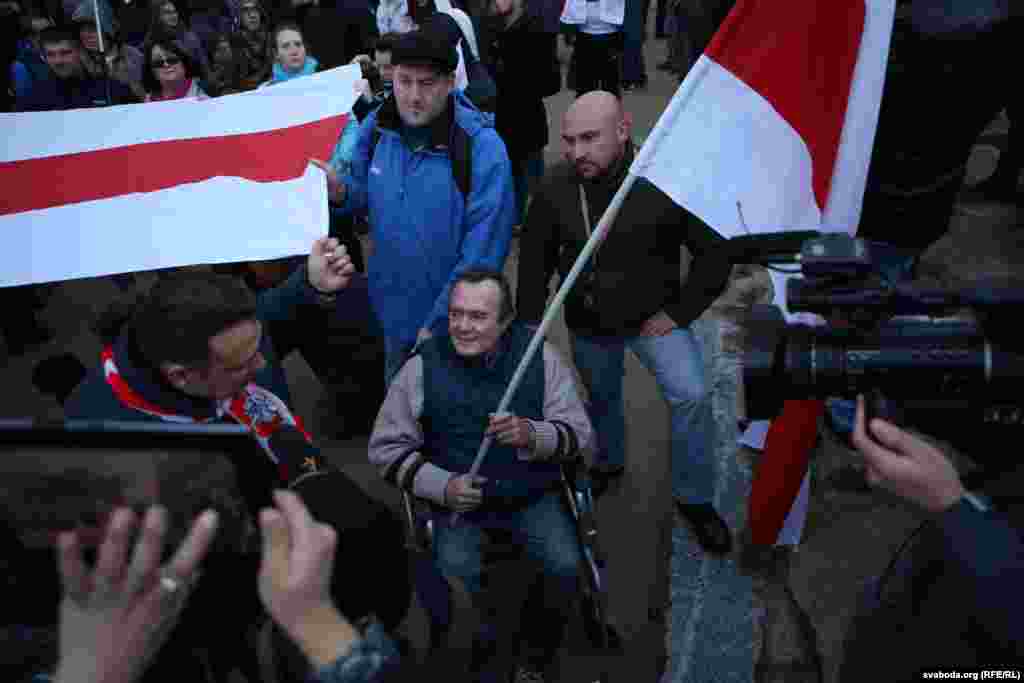Ад 700 да 1000 чалавек узялі ўдзел у шэсьці нацыянальнага сьцяга, якое зарганізавалі апазыцыйныя лідэры. Шэсьце прайшло ад плошчы Свабоды да плошчы Якуба Коласа. Фота Радыё Свабода