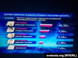 Дзяржаўныя экзыт-полы: Лукашэнка атрымаў больш за 80%, Караткевіч ці то другая, ці то трэцяя