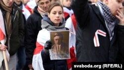Адметнасьць Дзядоў-2015 — людзі прынесьлі партрэты рэпрэсаваных беларускіх пісьменьнікаў.