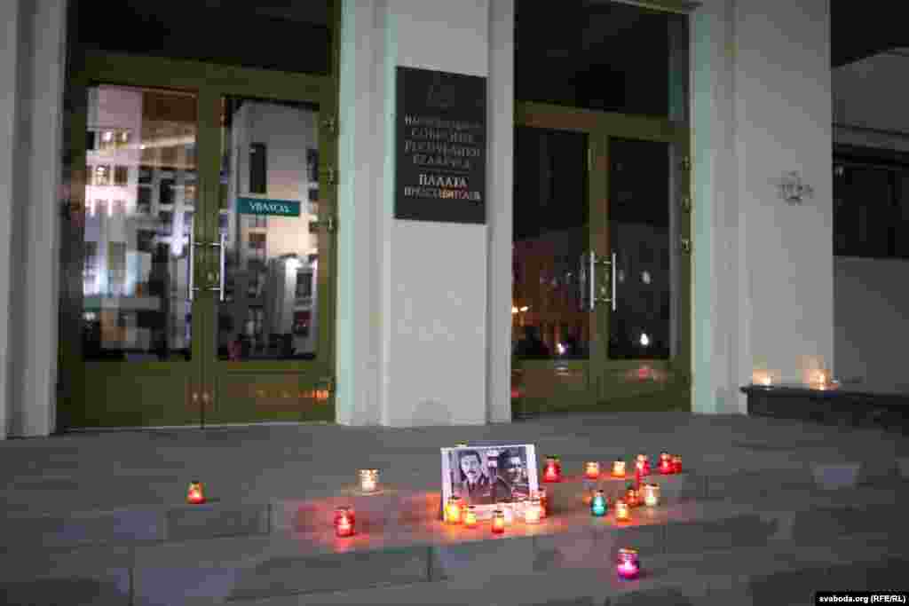 Каля Дому ўраду, дзе месьціцца Цэнтарвыбаркам, старшынёй якога быў да Лідзіі Ярмошынай зьніклы палітык Віктар Ганчар