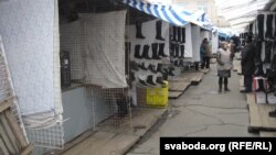 Адна з прадпрымальніц, якая назвалася Нінай, паказвае і без таго паўпустыя гандлёвыя рады на паўднёвай частцы рынку ды дзівіцца на рашэньні ўладаў: