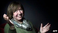 Сьвятлана Алексіевіч прыбыла ў Стакгольм 5 сьнежня наўпроставым рэйсам зь Менску. Жыць нобэлеўская ляўрэатка будзе ў Грандгатэлі ў цэнтры швэдзкай сталіцы. Абавязкі нобэлеўскага аташэ выконвае былы амбасадар Швэцыі ў Беларусі Стэфан Эрыксан, які сустрэў пісьменьніцу ў аэрапорце з букетам ад Швэдзкай акадэміі. Ён курыруе ўсю праграму Нобэлеўскага тыдня Сьвятланы.