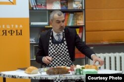 Пакуль я прэзэнтаваў кніжку, тысячы жанчын у розных гарадах краіны займаліся гатаваньнем пачастунку — проста на сваіх ссунутых разам працоўных сталах. У рамане закранаецца гэтая тэма — вельмі злосна і іранічна. Таму спэцыяльна для імпрэзы я прыдумаў пэрформанс «Не мужчынская гэта справа»: надзеў клятчасты фартух, сеў за свой аўтарскі стол і пачаў наразаць і намазваць бутэрброды.