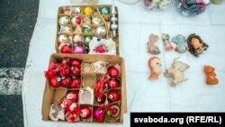 Напярэдадні сьвятаў шмат хто прадае ёлачныя цацкі. Плястыкавых кітайскіх тут зусім мала, усё больш старыя савецкія.