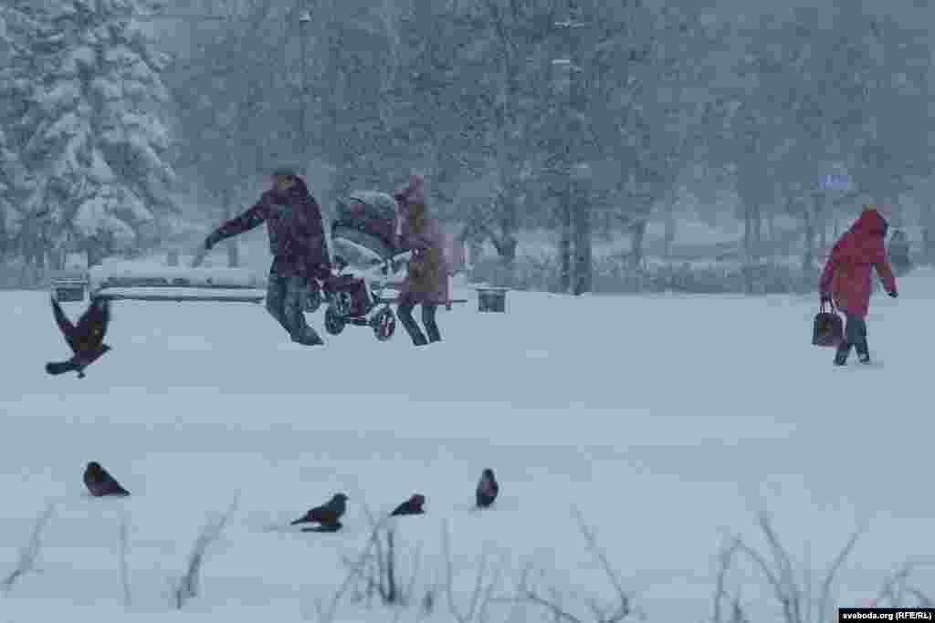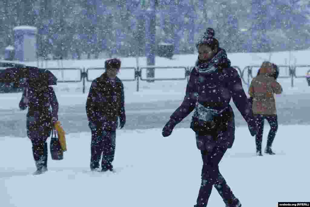 У Менску з-за сьнегападу транспарт стаіць у корках. Спэцтэхніка не спраўляецца з ачысткай дарог ад сьнегу. Людзі спазьняюцца на працу. Многія пасажыры выходзяць з аўтобусаў і тралейбусаў і ідуць пешкі.