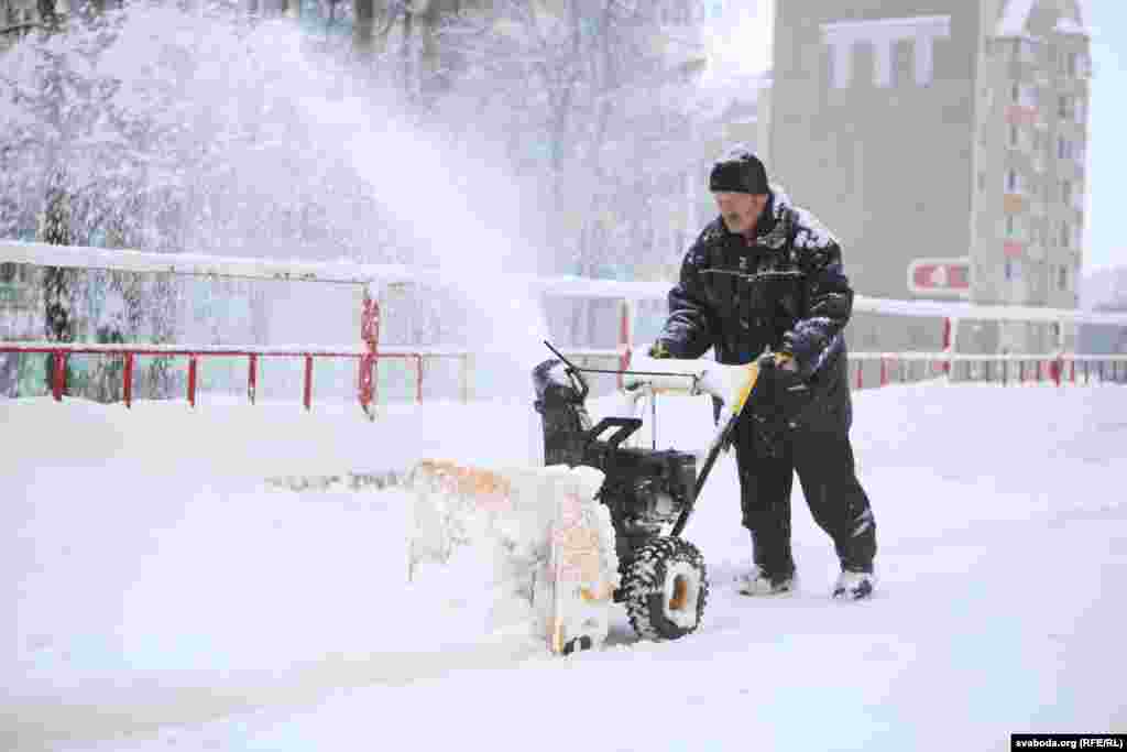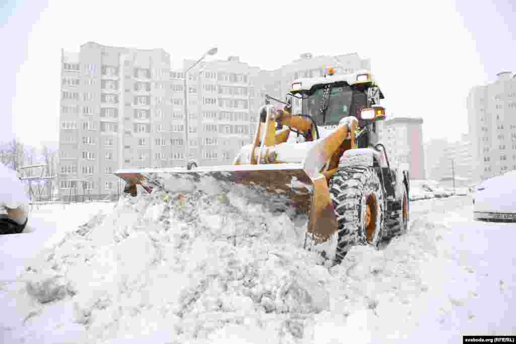 Камунальнікі не пасьпяваюць чысьціць сьнег, які замятае менскія дарогі.