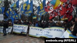 Акрамя таго, прыйшлі пад сьцены парлямэнту і супрацоўнікі фабрыкі «Житомирські ласощі», якая ня можа працаваць з прычыны рэйдэрскіх атак на яе.