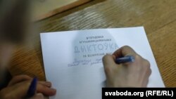 У памяшканьні Таварыства беларускай мовы ў Менску сёньня прайшла чарговая дыктоўка, прысьвечаная Дню роднай мовы. Агульнанацыянальная дыктоўка праходзіць у Беларусі ўжо дзявяты раз. Ініцыятарам яе правядзеньня быў палітоляг Уладзімер Падгол.