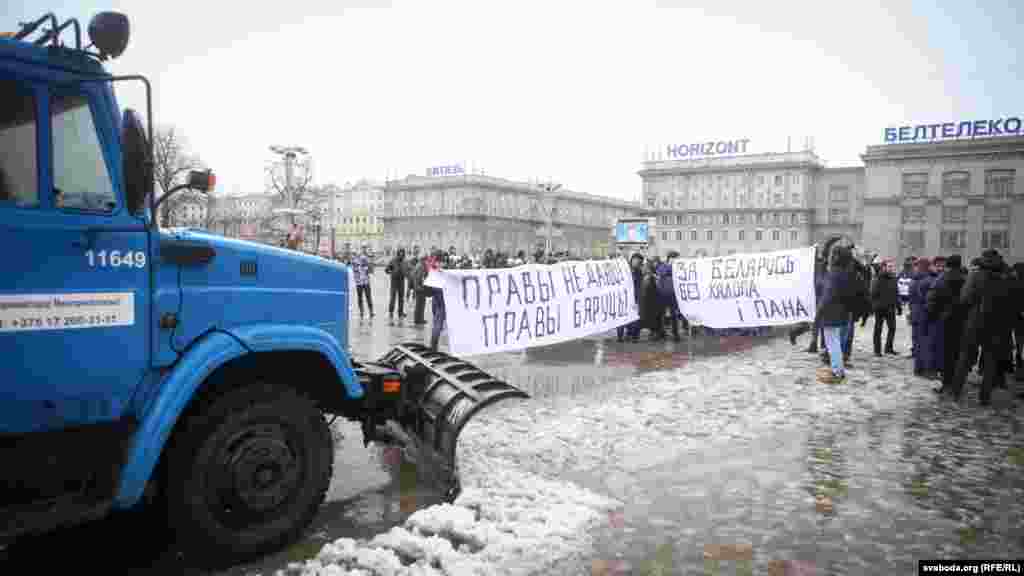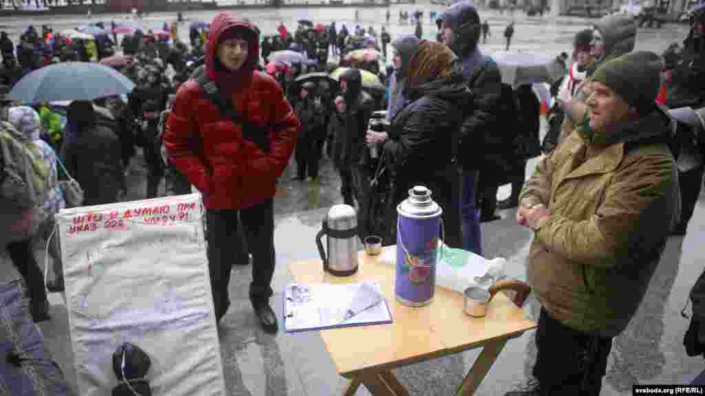22 лютага індывідуальныя прадпрымальнікі зноў сабраліся на несанкцыянаваны мітынг на Кастрычніцкай плошчы Менску.