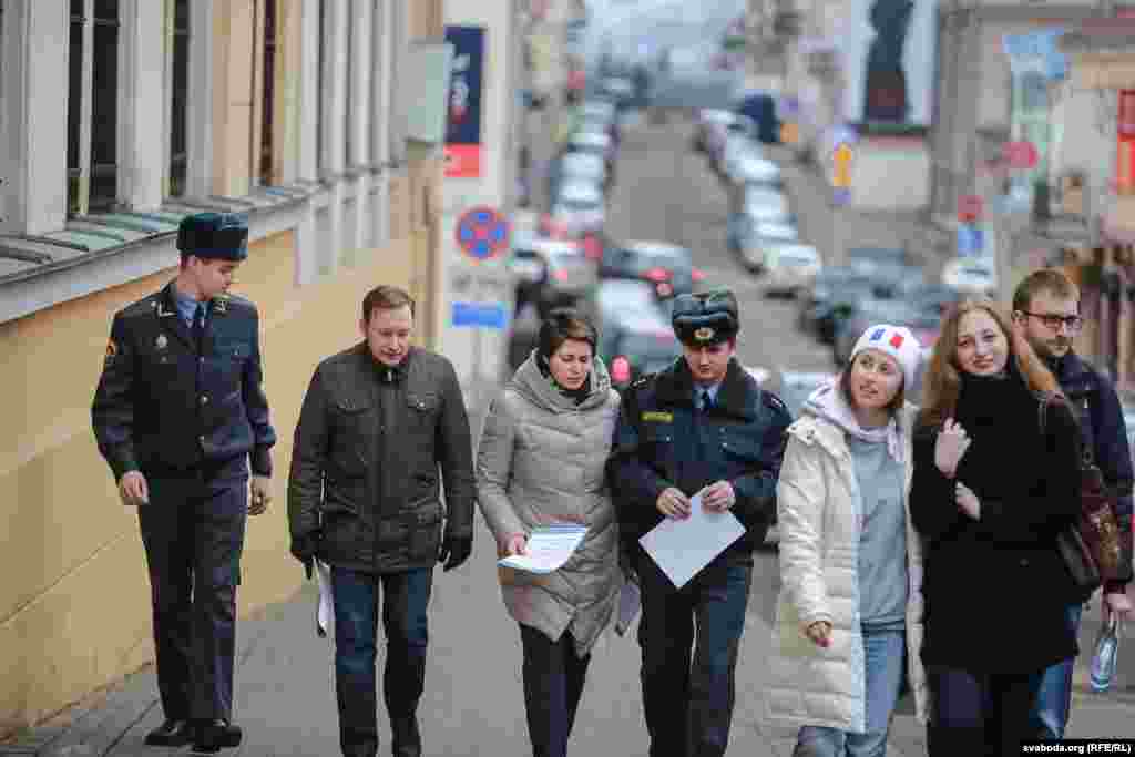 Ахоўнікі быдынку Аддзелу па барацьбе з арганізаванай злачыннасьцю цікавяцца ўлёткамі