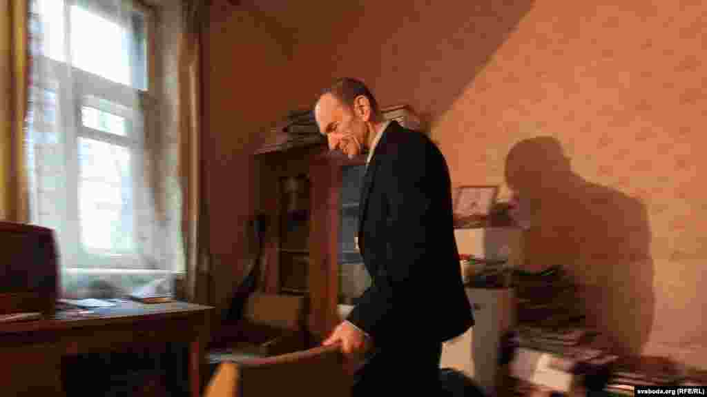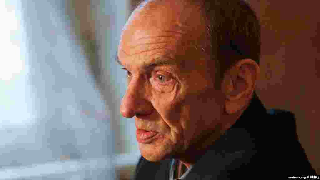 Сяргей Ханжанкоў на прэс-канфэрэнцыі пра ўсталяваньні крыжу для польскіх афіцэраў у Курапатах. Офіс БНФ, 5 сьнежня 2012 году