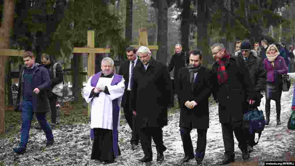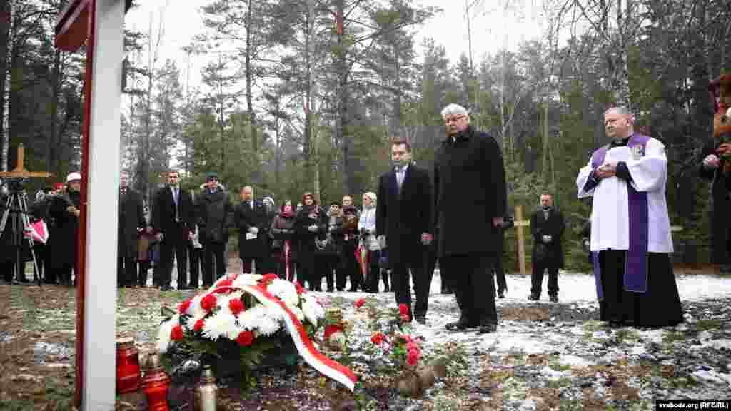 Вітальд Вашчыкоўскі, міністар замежных спраў Польшчы, усклаў вянкі ў Курапатах