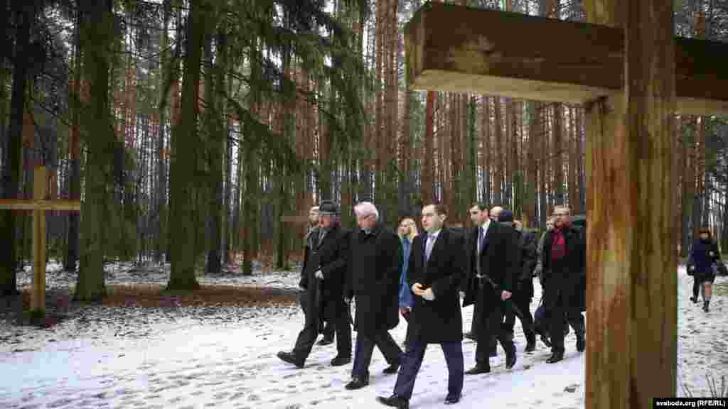 Першым месцам, якое наведаў польскі міністар падчас свайго візыту ў Менск, сталі Курапаты, дзе пахаваныя тысячы ахвяраў сталінізму.