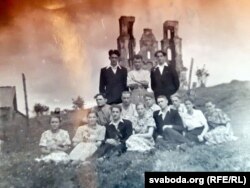 — Я памятаю, як ён стаяў. Прыгожы, высокі. Яго партызаны ўзрывалі. Каб немцы там не заселі. Памятаю — бацька мой казаў: «Дурні злажылі, разумныя не разарвуць». Разы два закладалі ў касьцёл узрыўчатку. І толькі кавалак сьцяны з боку вырвалі. А пасьля людзі сталі разьбіраць па цагліне. Сабе на печкі.