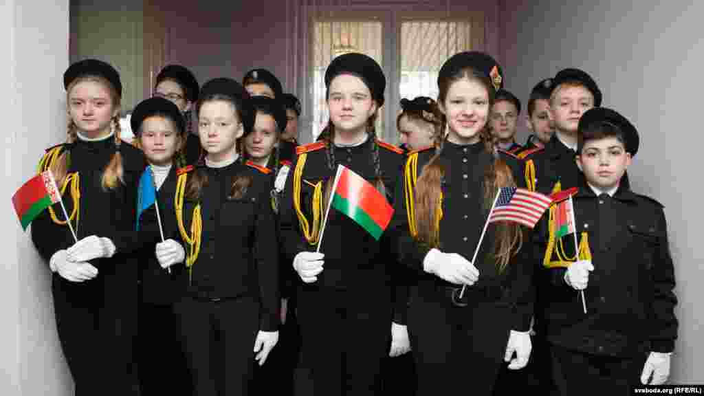 На ўрачыстай цырымоніі ў менскай школе прысутнічалі намесьніца генэральнага сакратара ААН Хэлен Кларк, міністар замежных спраў Беларусі Ўладзімер Макей і часовы павераны ў справах ЗША ў Беларусі Скот Роланд.