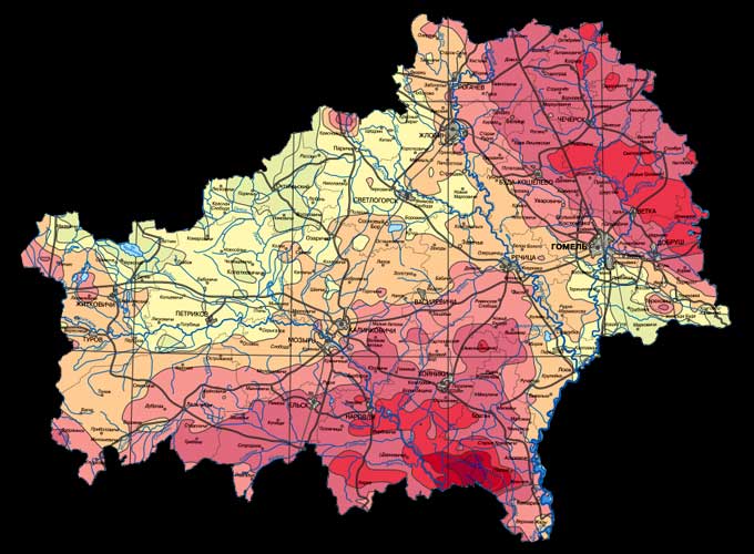 Забруджваньне цэзіем-137 закранула 66% плошчы краіны (звыш 130 тысячаў квадратных кілямэтраў).