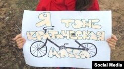 «Сёньня тваіх знаёмых, заўтра цябе. # Ятожекритическаямасса. 29 красавіка АМАП напаў на раварыстаў. Зрабіце здымак на знак салідарнасьці. Напішыце ліст затрыманаму. Раскажыце сябрам. Прыходзьце ў суд», — пішуць у сацсетках. 29 красавіка шэсьць раварыстаў «Крытычнай масы» былі жорстка затрыманыя АМАПам у сувязі з тым, што парушалі правілы дарожнага руху.