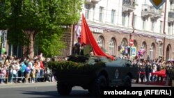 У адрозьненьні ад парадаў мінулых гадоў, вэтэраны з «уазікаў» не вытыркалі партрэтаў Сталіна. Людзі сталага веку віталі школьнікаў, вышыхтаваных «жывой сьцяной» паабапал вуліцы Першамайскай, з расчыненых вакон машын.