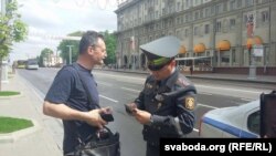 Міліцыянт запрасіў журналіста сесьці ў машыну і яго павезлі для далейшага разбіральніцтва.