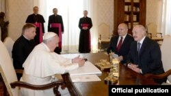 Сустрэча кіраўніка Сьвятога пасаду і прэзыдэнта Беларусі прайшла ў фармаце «сам-насам» ў памяшканьні папскай бібліятэкі.