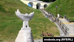 На беразе Нёмана пад Замкавай гарой паставілі скульптуру княскай шахматнай ладзьдзі.
