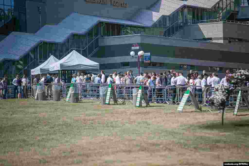 Уваход на парад толькі пра турнікеты. Побач з месцам правядзеньня вайсковага параду значная колькасьць супрацоўнікаў у цывільным.