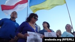 Удзельнікі акцыі — украінскія журналісты і палітыкі, а таксама беларусы, якія жывуць ва Ўкраіне — прыйшлі на Майдан з кветкамі, зьнічкамі і бел-чырвона-белымі сьцягамі. Яны скандуюць: «Жыве Беларусь!», «Слава Ўкраіне!».
