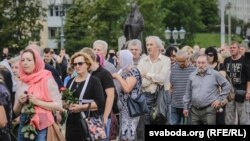 Цырымонія распачалася аб 11-й і будзе трываць да 14.00. Пахаваюць Паўла Шарамета на Паўночных могілках у 14:30.