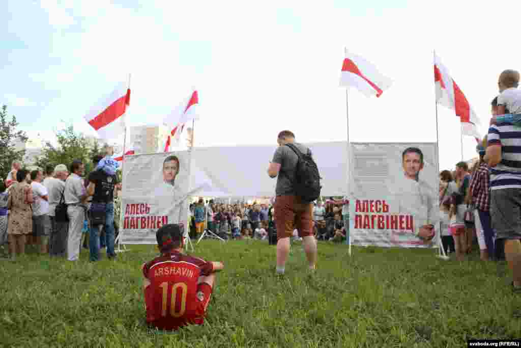 Вулічны канцэрт Лявона Вольскага адбыўся ў межах пікету па зборы подпісаў за вылучэньне кандыдатам у дэпутаты намесьніка старшыні Руху «За свабоду» Алеся Лагвінца.