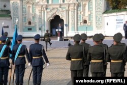 Ва ўрачыстасьцях удзельнічалі жаўнеры ўкраінскага войска і флёту, апранутыя ў новую ўніформу, якую нядаўна вырабілі на зьмену старой, савецкага ўзору.