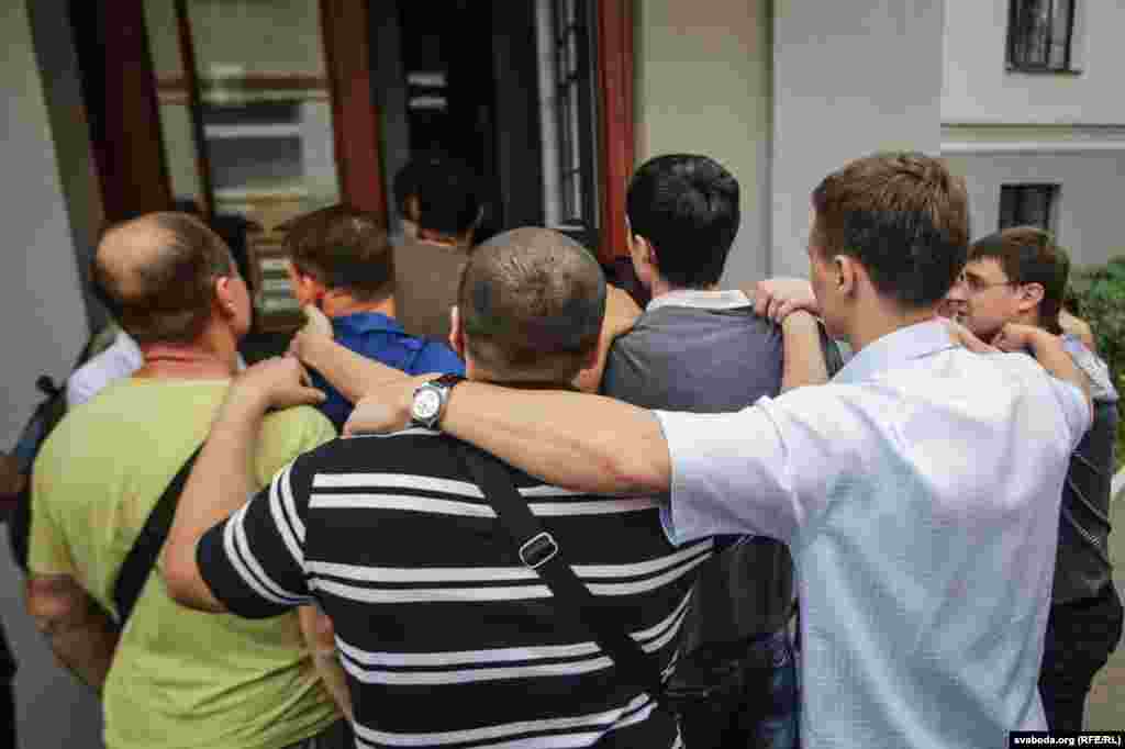У адрозьненьне ад сваёй «групы падтрымкі», Уладзімер Япрынцаў пасьля вызваленьня ў залі суду ахвотна кантактаваў з прадстаўнікамі СМІ.
