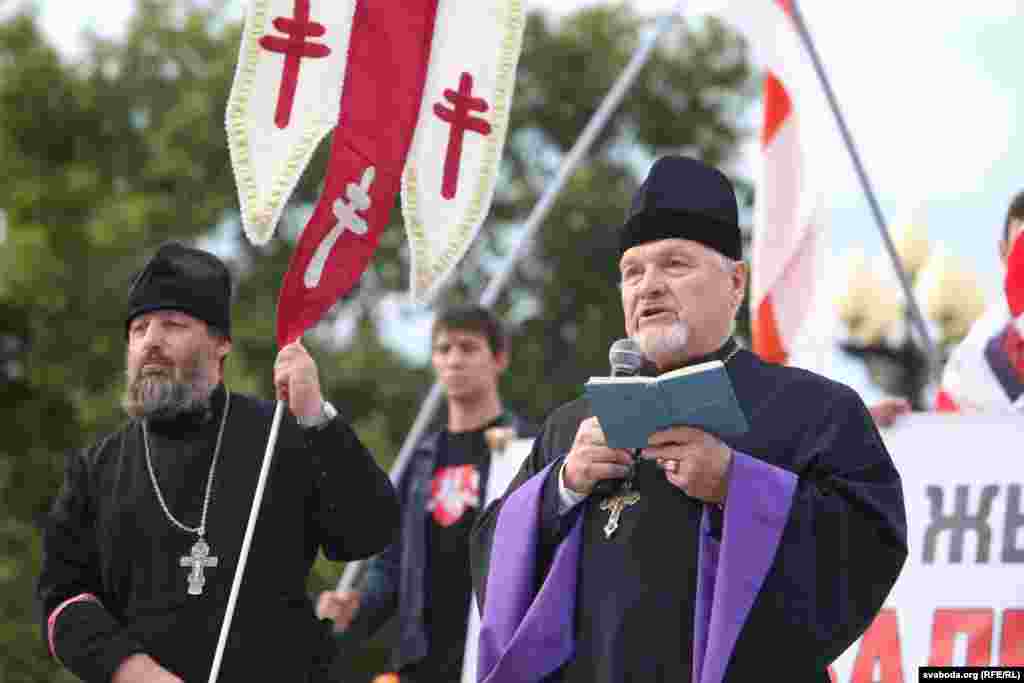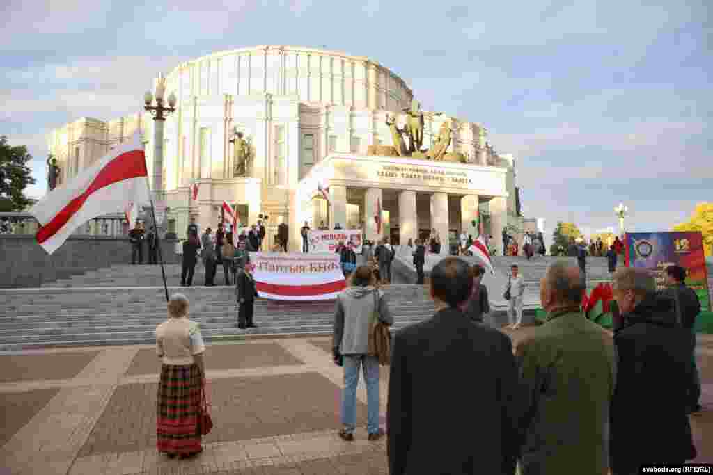 Сьвяточны мітынг, прымеркаваны да дня перамогі пад Воршай у 1514 годзе, зарганізаваны Партыяй БНФ прайшоў на прыступках перад Опэрным тэатрам у Менску.